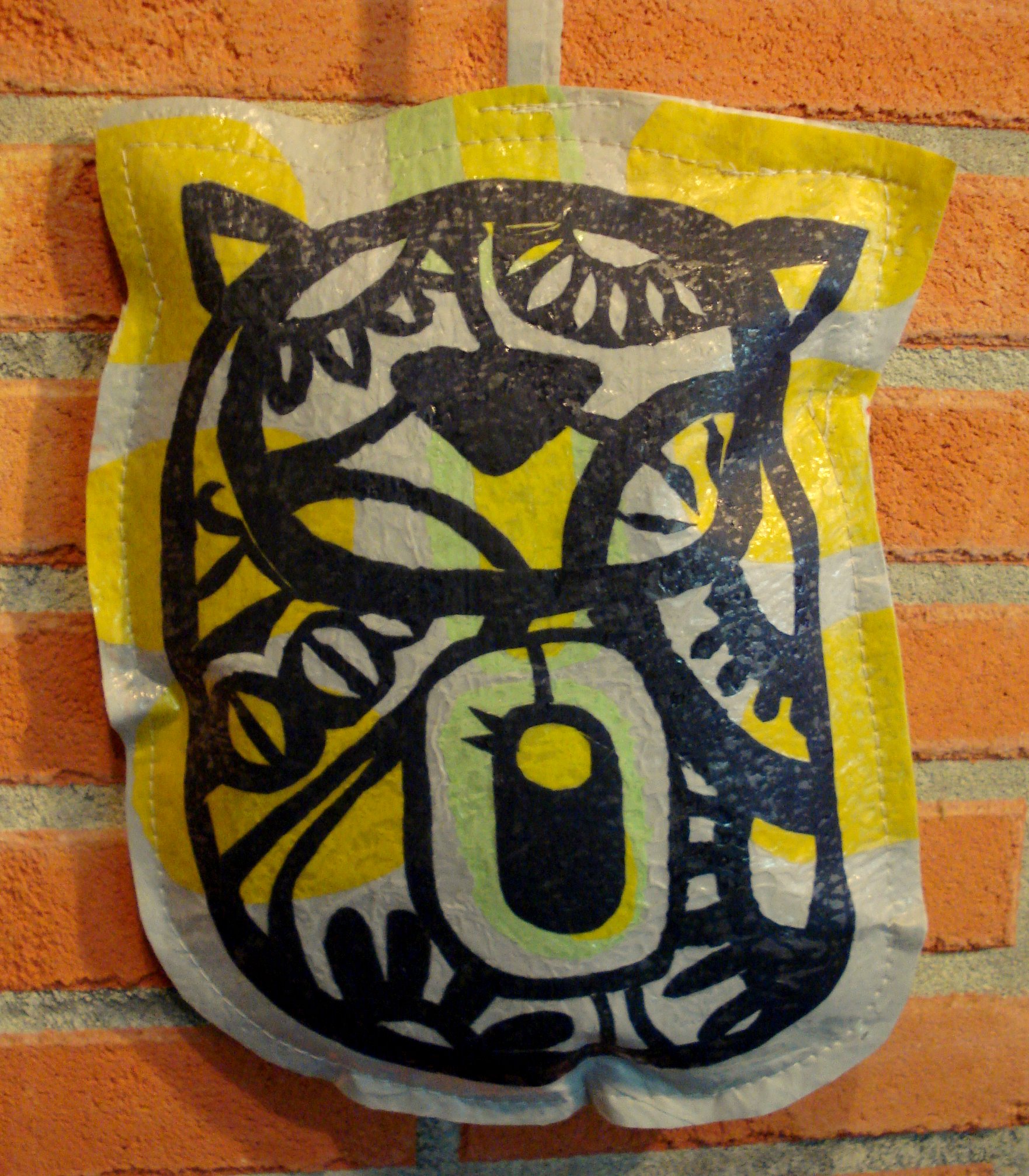 Limor, whose friends and family religiously collect plastic bags for her art, uses stitching and heat to fuse several bags together and create a design. All of her designs are based on the materials being used at the moment, and so no two designs are alike.