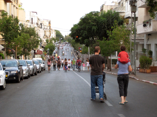 tel aviv walking yom kippurCities built for foot traffic are naturally designed differently than cities designed for traffic propelled by the internal combustion engine. Streets, buildings, lighting, signage – all can be scaled for a car, or scaled for people.