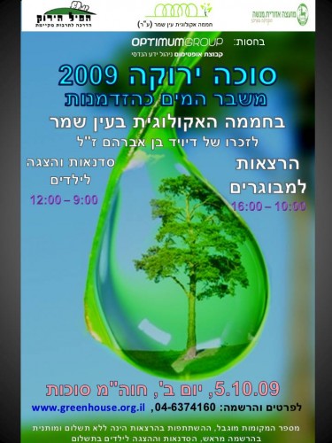 The ecological greenhouse in Kibbutz Ein Shemer will be hosting their annual Green Sukkah Conference again (we wrote about it last year as well) with this year’s topic being “The Water Crisis as Opportunity.”