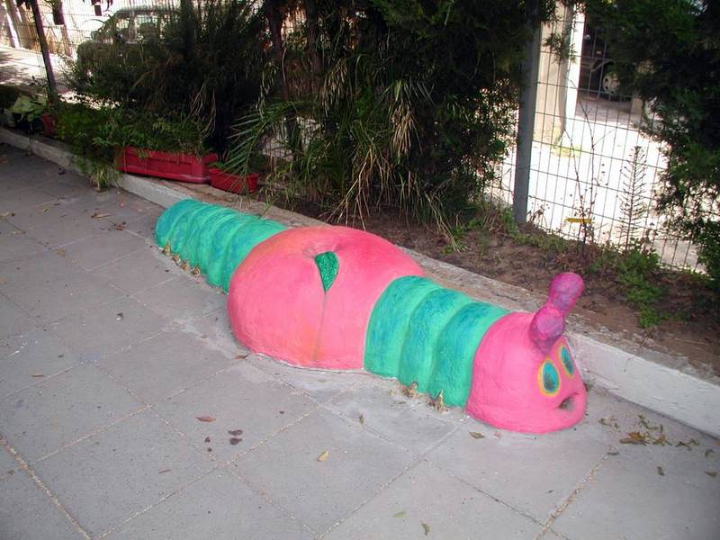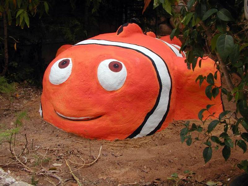 In her workshops, groups make usable sculptures for kindergartens, schools and parks. Once Rich and the children decide on a project, they collect materials such old bottles, tires and newspapers. These discarded items form the foundation. It’s a nice way to get kids creative and learning about environmental concepts. Read on for more pictures.