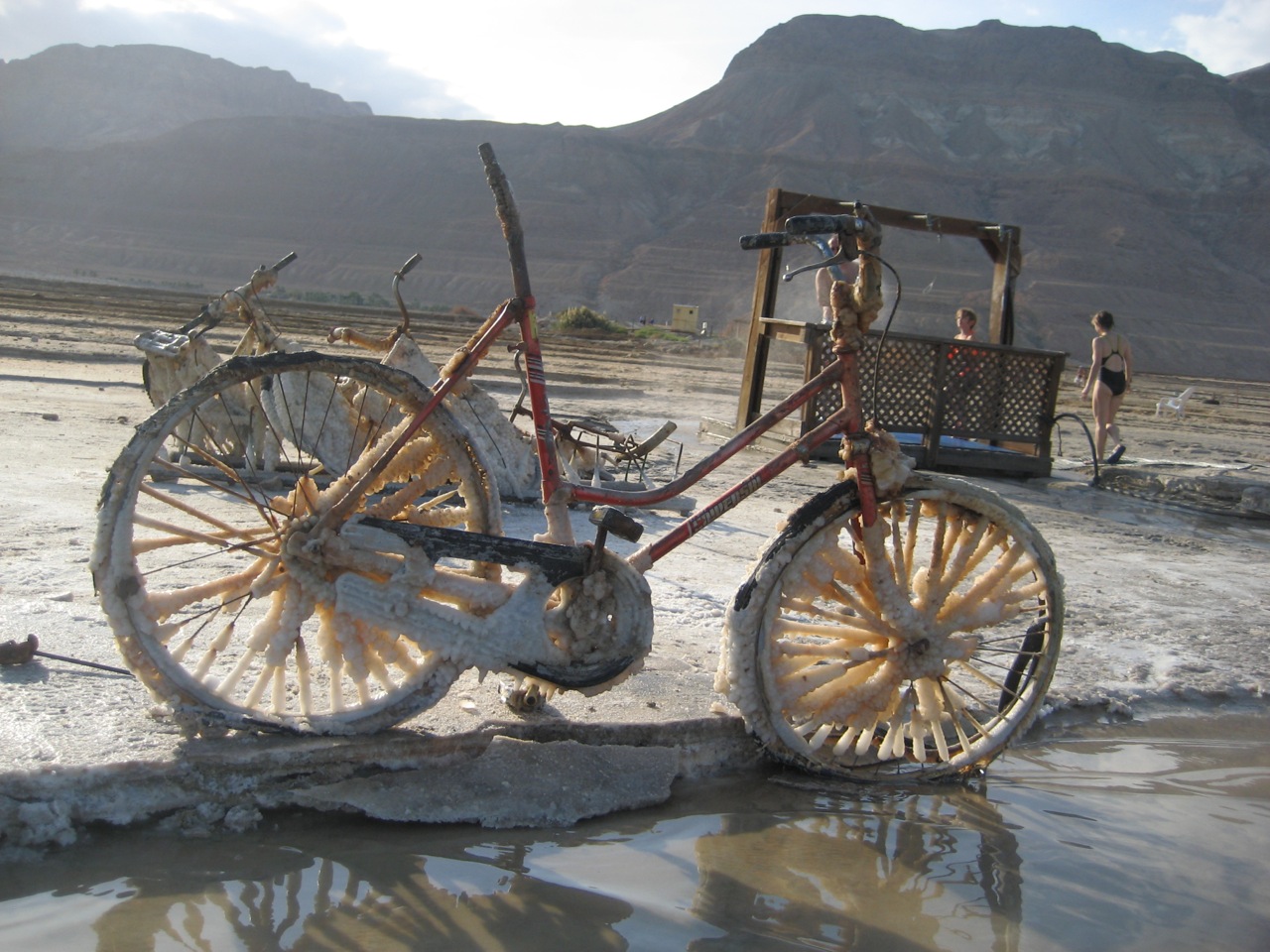 News:: "Petrified Bike" Metaphor for a Shrinking Dead Sea? http://www.greenprophet.com/2010/01/02/15476/bike-dead-sea/