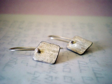 Lily collects all of the silver scraps that she generates while creating her handmade jewelry line and takes them to a friend’s studio, where they are all melded together and rendered useful again.  Certain items in her Etsy shop are made entirely out of recycled silver (like the ocean sky recycled sterling silver hoop earrings shown above – who knew?).