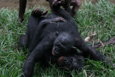 The bonobos have found the solution to world peace. It’s called love. Whenever there is a dispute, they resolve it with a good bout of nooky. A bit of masturbation here, a little tickle where it feels really good there, and soon enough the tension is relieved. Have a problem? Not after you’ve had sex, bonobo style.