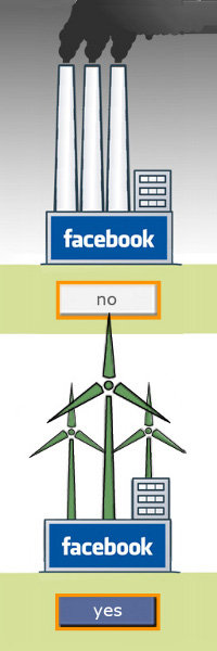 Why now? Because Facebook recently announced that it will be building a massive data center in Oregon in order to serve the millions of people currently using the site. Facebook proudly noted that the center will be full of energy efficient computers… but the company plans to run the site on coal-generated electricity. (So what’s the point, right?)