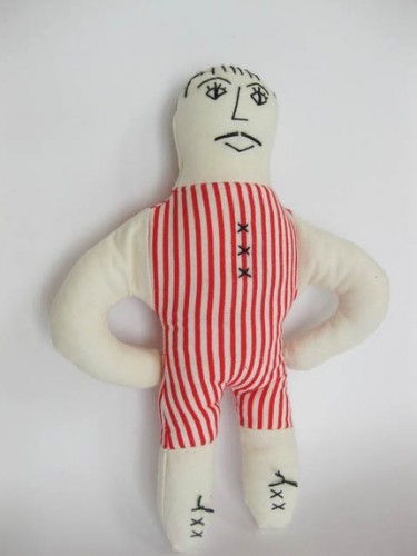 Neta Amir, an artist and designer who runs two shops, collects discarded fabric. With this fabric, she makes shoes, bags, cloth mugs (yes, beautiful cloth mugs), and handcrafted dolls that are pretty much more artwork than plaything. (Check out an item from her “Let’s cloth it” line of home accessories to the right.)