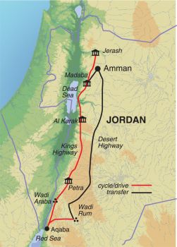 Bike tourists considering a touring itinerary of Jordan will definitely want to include a bike tour of Petra and Wadi Rum, as well as a scenic ride along the Kings Highway to Aqaba on the Red Sea.