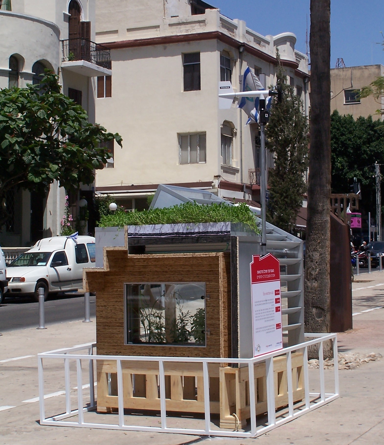green homes tel avivAn Israeli bank tries to sell “green mortgages” with installation exhibit on busy boulevard.
