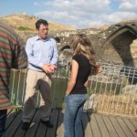 Gidon with Al Jazeera newscaster. Roman bridge is in background.