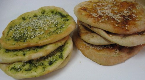 While the ordinary pita you pick up in the market is pretty good, you can easily make it at home. Baked with one or both of these simple toppings, piled up in a basket still hot and put down on the table, it’s the essence of the Middle East.