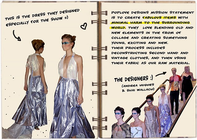 A few weeks ago a fashion show of PopLove’s upcycled couture was paraded down one of the buildings at the Interdisciplinary Center (IDC) in Herzlia in an attempt to raise awareness about the need for water conservation in Israel. The event, “Thirsty for Change”, was organized by an IDC student, Talya Friedman, as her final seminar project. The proceeds from the (fun) event were donated to Israel Water Treaty – a local organization that attempts to protect residents’ right to quality water and provide educational programs about water.