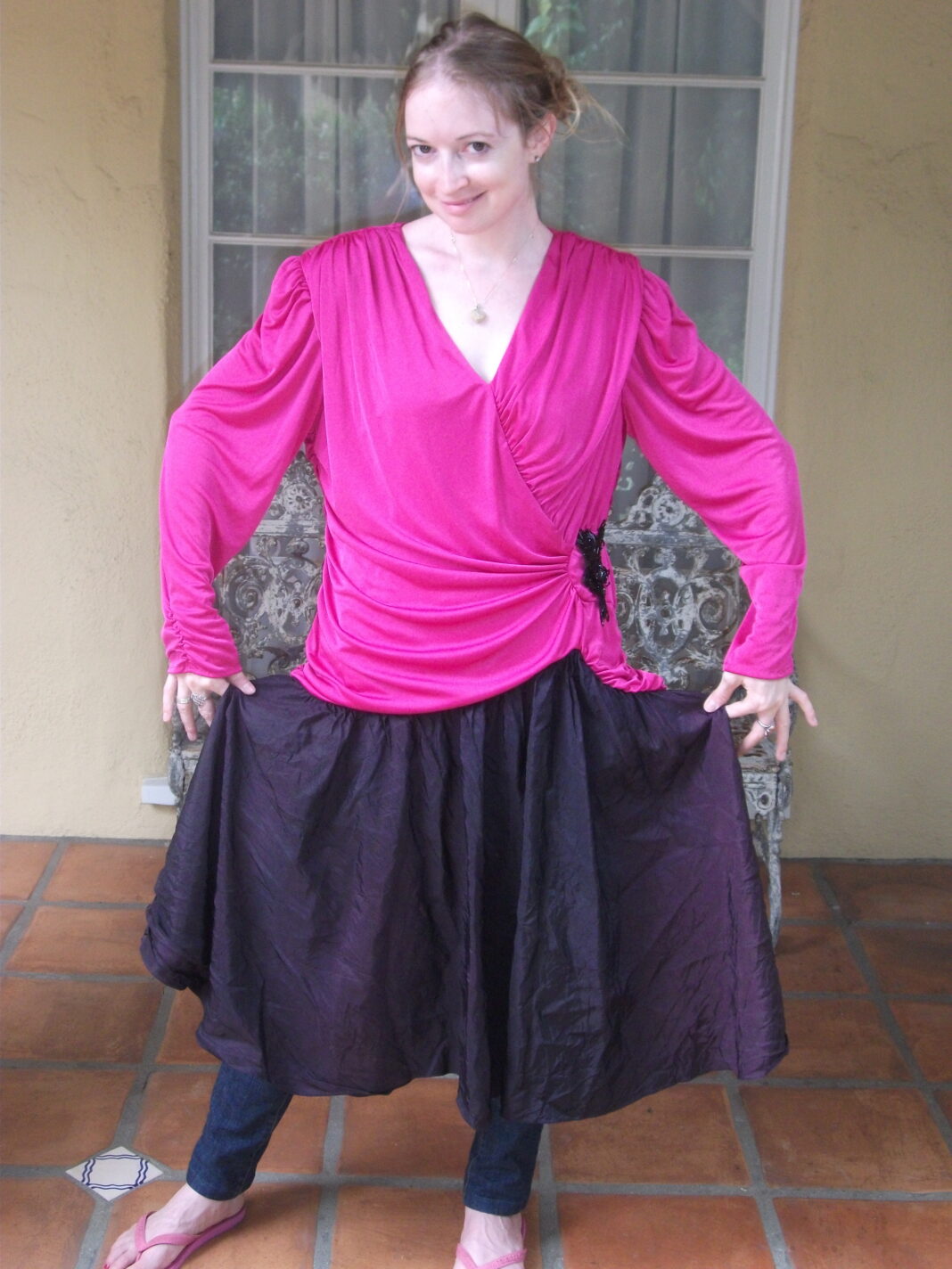 The 80’s style prom dress above transformed into a unique pink top to the right from Day 264 is just one example of what can be done with some seriously outdated fashion, some creativity, and some eco-friendly upcycling spirit.