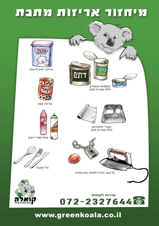 If you’ve ever made yourself a tuna fish sandwich in Israel, you may have had some green guilt when the time came to toss out the can. Until now, the only items that are widely recycled in Israel have been paper and plastic bottles (with recycling of electronics and batteries available in very few locations). The public collection and recycling of a variety of other disposable packaging, such as metal and aluminum packaging, has not been available. Thankfully, Koala Recycling Solutions is trying to change that.