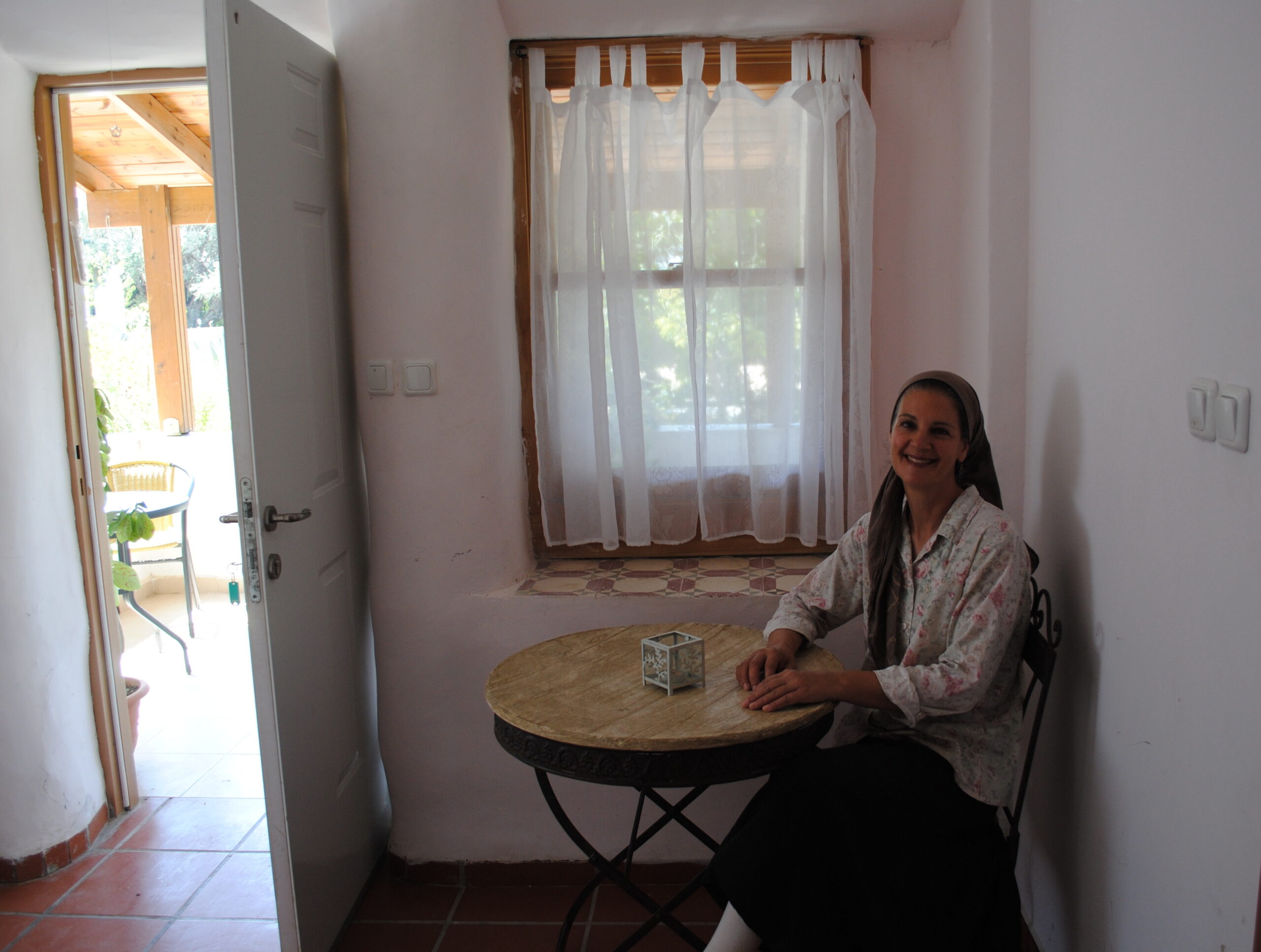 We visited the Kopp home in Safed, Israel this week. There was nothing primitive about the electricity, plumbing, spacious rooms with tiled floors, or shady porch. Nor in the green concepts behind the comfortable 2000-foot dwelling:- reportedly the first straw-bale house in Israel.