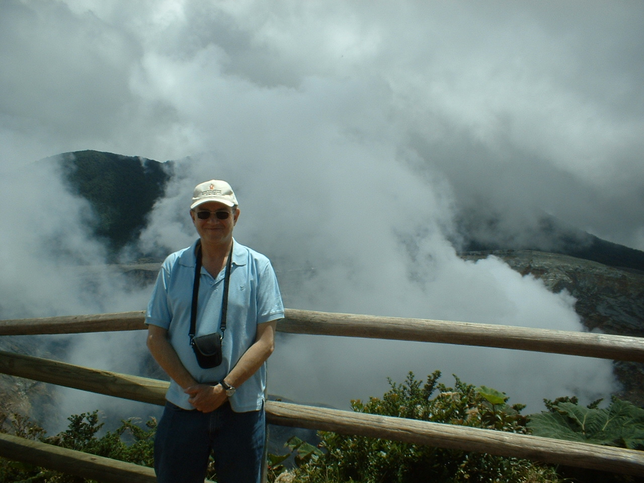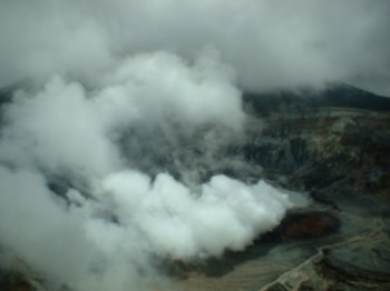 The vast landscape is denuded of vegetation. Sheer rock in various shades of brown, gray and red line the sides of a huge crater of the Poas Volcano that is very much active. Clouds hover overhead and a jet of vapor and steam pumps from the bowels of the earth. It is raw nature, the source of power that can and has ejected boulders, lava and ash within recent memory (1956). At present, the 1.6 kilometer wide crater emits steam and vapor, a reminder of its explosive potential, an epicenter for earthquakes.