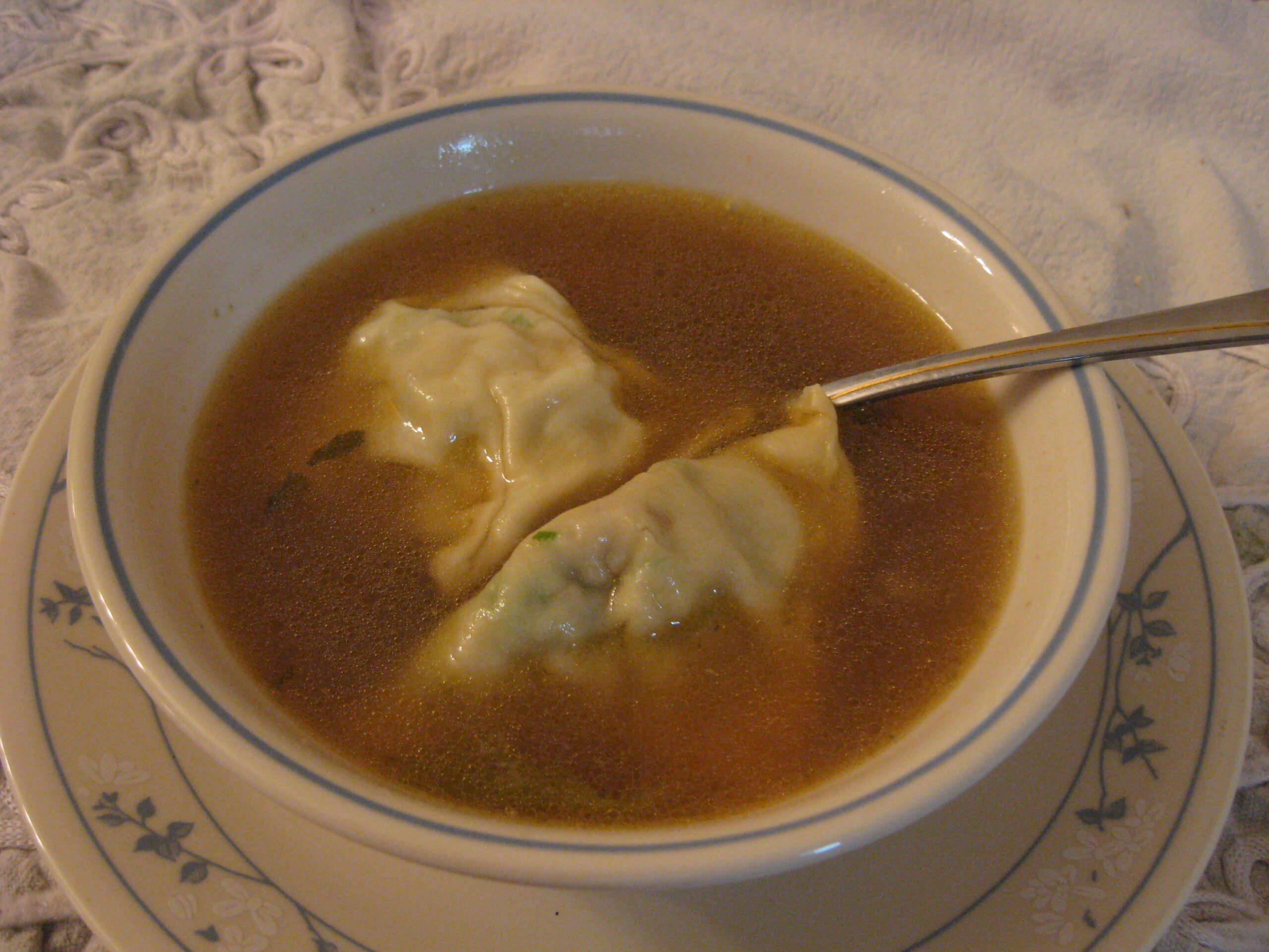 5. Have plenty of salted, boiling water ready. Carefully lower kreplach into it. Don’t crowd the pan; allow the dumplings room to expand in cooking and float up to the top. This should take 3-4 minutes. The kreplach are done cooking when they’ve floated up and cooked 5 minutes.