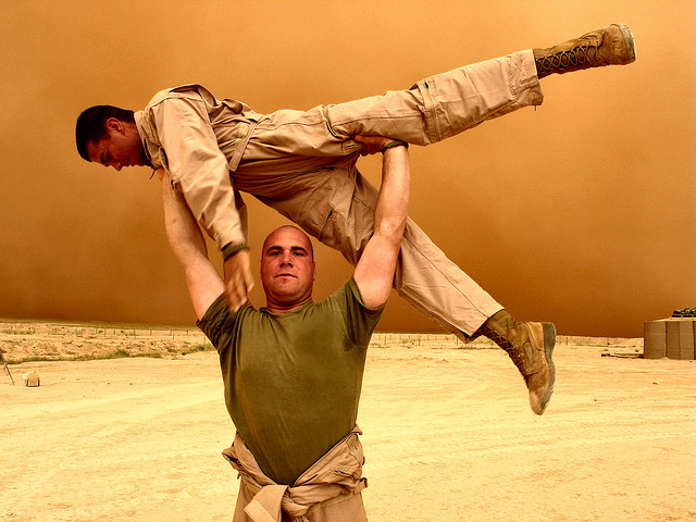 Approximately two thirds of the Middle East is comprised of desert, including as it does the largest continuous expanse of sand (in Saudi Arabia) known as Rub’ Al Khali or the empty quarter. With so little moisture there are no hovering clouds, and therefore no protection from the pounding sun. The ground gets hotter, creating a wind convection that blows a most furious sandstorm though the region.