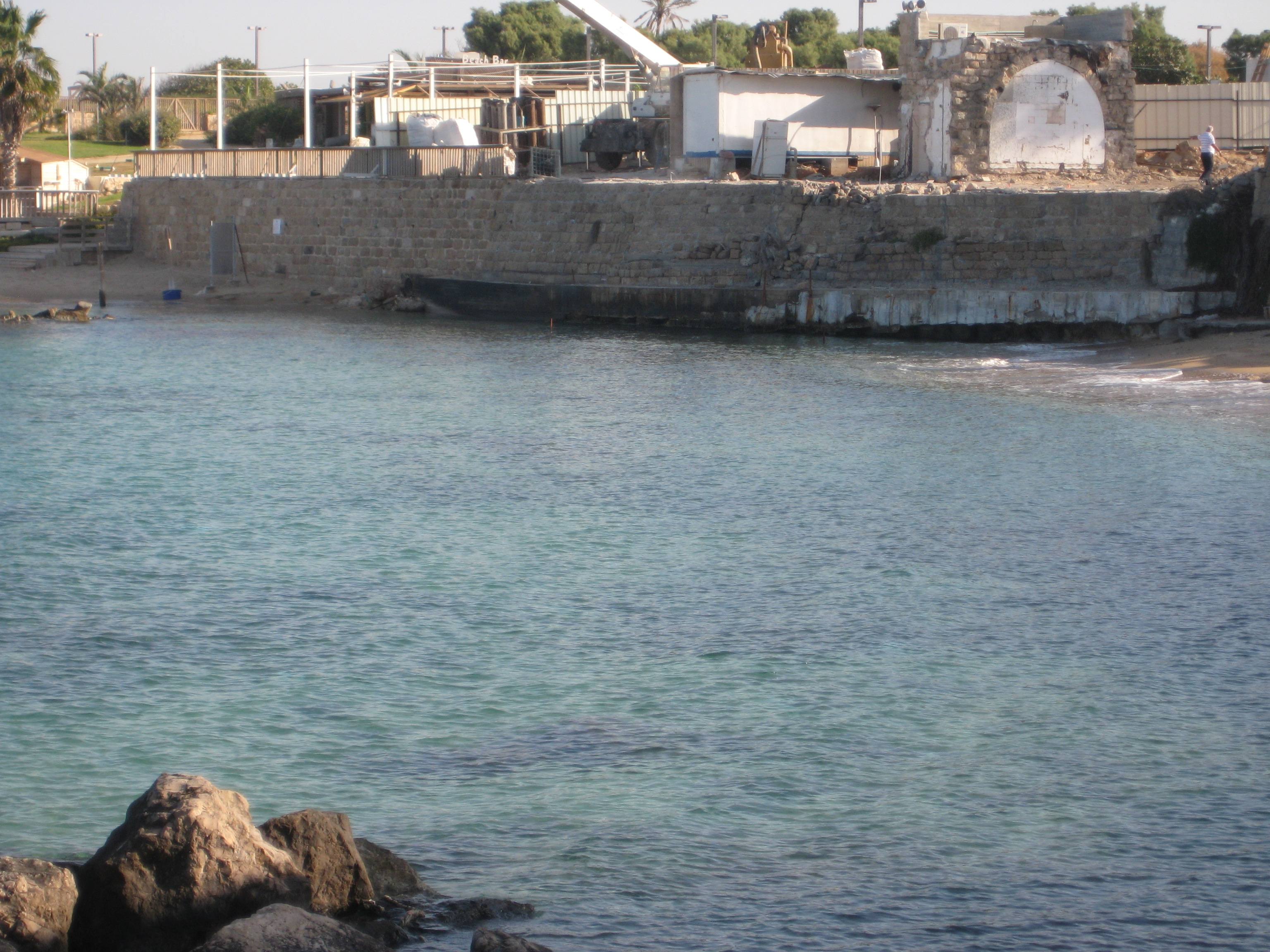 A modern-day sea wall outside the Caesarea archeological site fell early on Sunday, leaving the walls of the ancient port exposed to the crashing waves.