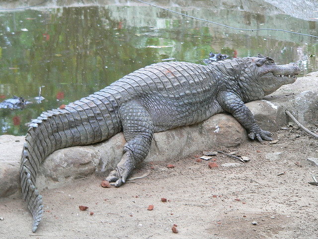 The mugger crocodile, a freshwater reptile that can reach a length of 13 feet, is found throughout the Indian subcontinent and the surrounding countries, including India, Iraq, Pakistan, and Sri Lanka. The Iranian and the Ceylon sub-species are endangered. The crocodiles feed on fish, frogs, crustaceans, birds, mammals, and other reptiles, and chase prey on land for short distances.