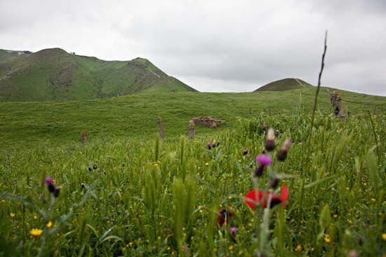 Estimated to be 1400-years-old, there’s a lot of history and culture buried on the hilltop, which in the words of one blogger, becomes a lovely site worth the strenuous climb to the top. “Geographically the region already belongs to the Turkmen steppe…it is not plain as you might expect of a steppe, but an endless series of low mountain ranges that ripple away to the horizon like a petrified sea.”