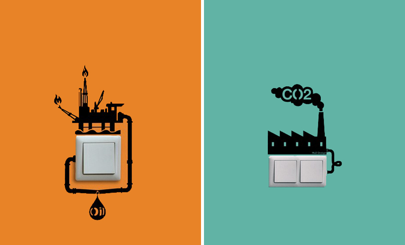 Then there are those who have a strong eco-conscience, don’t eat meat, ride bikes, and shop second hand. And finally, there are folks who live entirely without money. But everyone could use a gentle reminder once in a while. Hu2 Design’s stickers show everybody the hidden costs behind household choices.