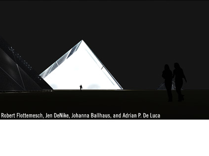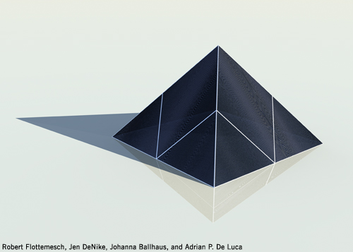 Designed by Robert Flottemesch, Jen DeNike, Johanna Ballhaus, and Adrian P. De Luca, the Lunar Cubit comprises nine solar-paneled pyramids: the largest in the middle represents the earth, while the eight smaller pyramids – all of which were built in proportion with Egypt’s Great Pyramid of Giza – represent the eight lunar phases.