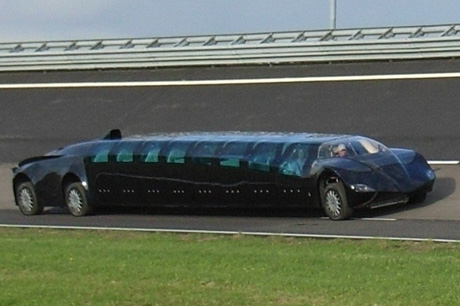 Commuting time between the United Arad Emirates super cities of Dubai and Abu Dhabi could be cut in half in a newly invented electric Superbus able to ply the 124 km distance in only 30 minutes, according to The National. The new electric stretch limo, or sleek super bus, is 15 meters long, 2.5 meters wide and 1.65 meters high, has eight gull wing-style doors on each side, and can accommodate up to 23 passengers in “limousine style” comfort at speeds of 250 km per hour. A dream car for Batman or another example of the bad taste of ostentatious wealth?