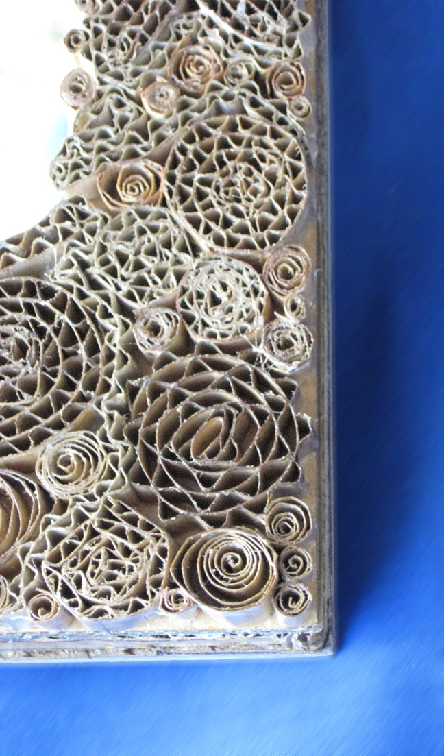 (Above, an image of a personal shopping folding trolley, and to the left is a cardboard mirror frame that was handmade from discarded cardboard.)