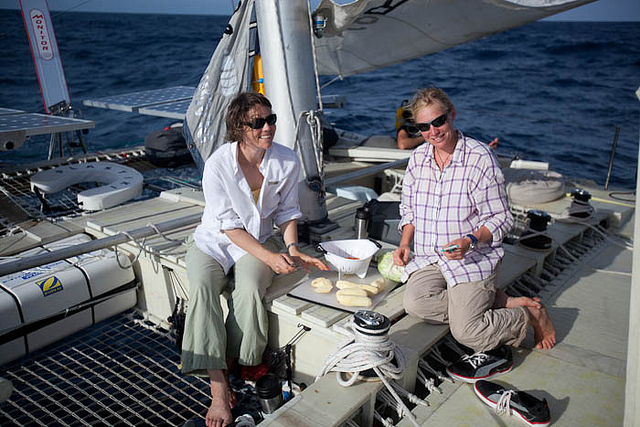 Run by the amazing Jo Royle, the crew demonstrates that our current consumption patterns – based on extraordinary waste – can be overcome. With quite a bit of spit, ingenuity, gumption, and yes, tenacity, we can build boats that do not harm the environment. We can grow food in the middle of the Pacific ocean. And we can even charge our ipods and rock out to God of Thunder during a storm – if we want to. The point is, and Plastiki makes this clear, anything is possible.