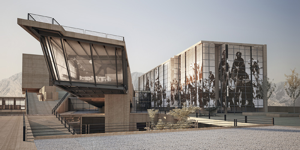 This is more than a building with a ragged mountain backdrop. This architecture creates the ultimate in sensory education for Jordan’s film students.
