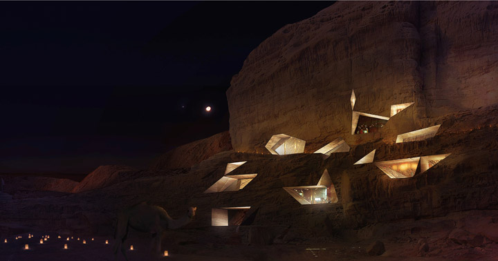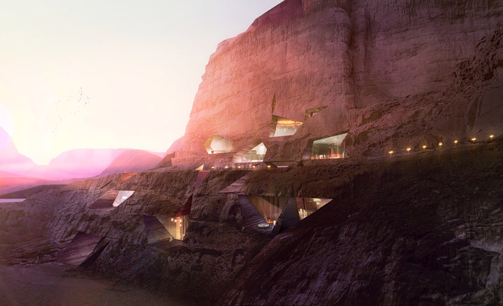 Chad Oppenheim’s design for an eco lodge in Jordan’s desert is absolutely breathtaking. Also called the Valley of the Moon, Wadi Rum resembles a martian landscape with its high red sandstone and granite walls.