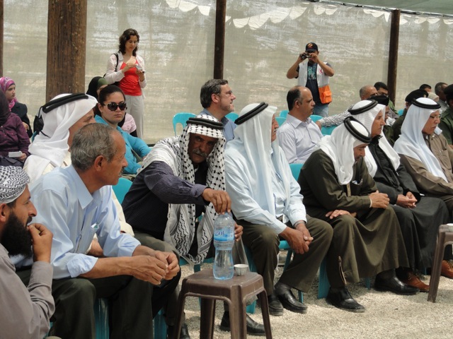 Today was a special day. Rubenstein from the American Government would be rolling in soon with his security personnel and tinted black windowed truck. Waiting for him, and his address, the people of Auja, including the mayor, and local tribal leaders, and police were passing small black cups of coffee, drinking from Jericho bottled water, waiting in the tent for the official inauguration. Rubenstein would also plant a tree, a eucalyptus, along with elders from the village.