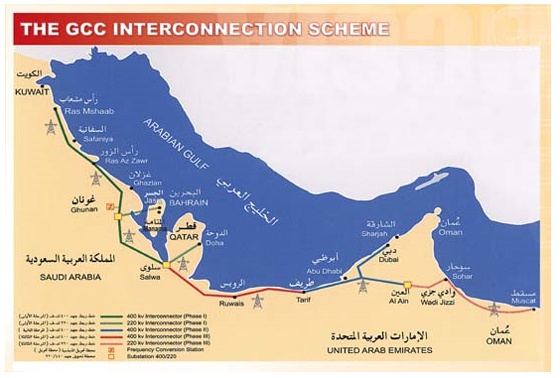 The GCC Interconnection Project will connect the grids of the six Gulf states with both overhead electric lines and an underwater cable in the Arabian Gulf, at a cost of more than $1.4 billion. It will make it possible to create a common energy market and help grow sustainable energy supplies from solar projects and wind farms.