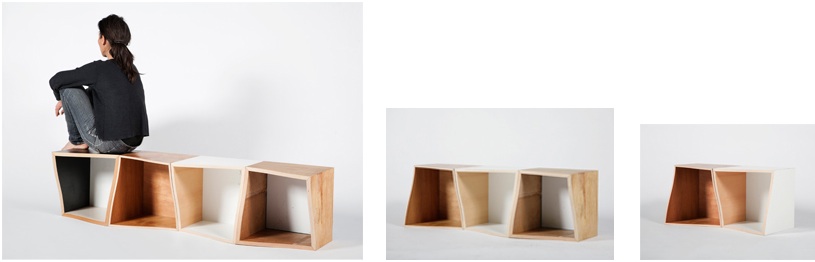 Singular upcycled wooden boxes called “Frank” combine to create larger design pieces.