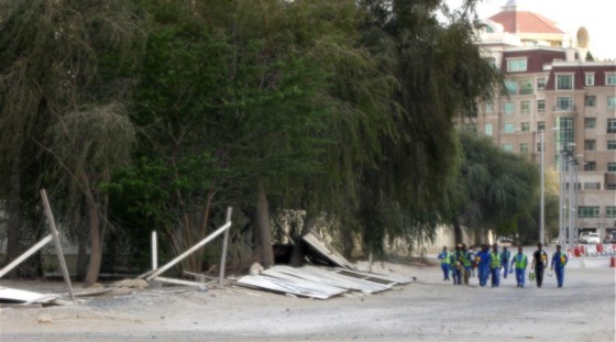 Whereas malls and leisure areas set their thermostats at a bone-chilling 21 degrees celsius average, these semi-homes are mostly likely cooled with fans or not at all. Contemplating this, and encountering many workers on my walking tour, I wondered how it feels to work on a Middle Eastern construction zone in the dead of summer?