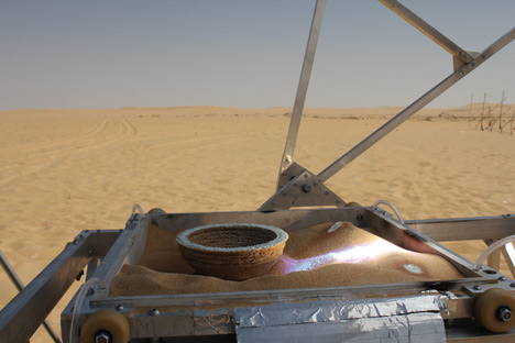 sahara desert, sustainable design, green design, solar energyOnce the optimum layers of sand have been processed by the solar beam, and have all melted into the desired form, the resulting object is left to cool. After that, it’s ready to go!