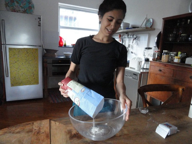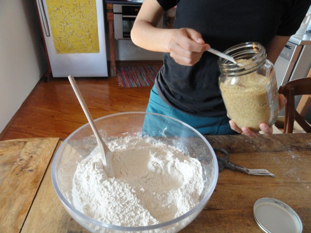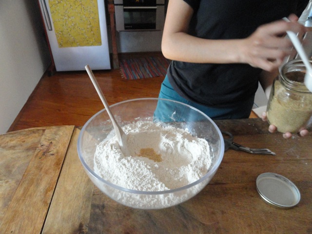 1 kg pre-sifted whole wheat organic flour (set aside half a cup for the end)