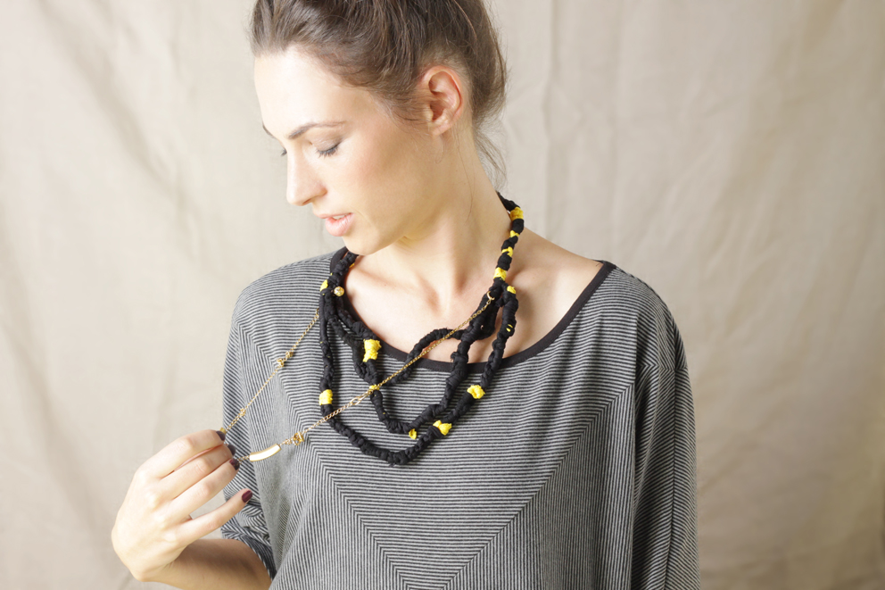 "ecco ukka fabric necklace"Ecco Ukka’s funky fabric jewelry pieces are green, fashion forward, and comfy all at the same time.