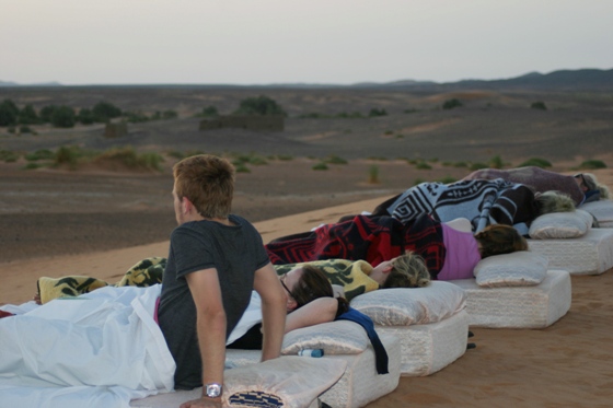 After dinner, we drank Moroccan wine produced in Volubilis, a former Roman site in Northern Morocco, while our Muslim guides and their helpers treated us with a genuine Berber jam session. We all took a go at the drums, some of us less coordinated than others, and I jokingly requested that our driver Sa’id be our private belly dancer. He didn’t really love the idea.