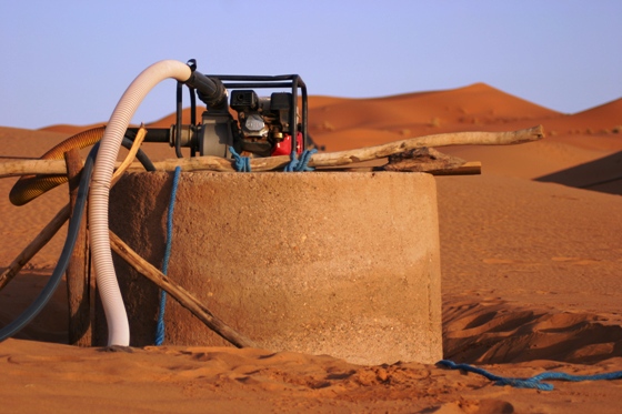 A diesel generator is used (conservatively) to pump water from a well to a tank on a hill, where it is heated by the sun. If not for sensitive bellies, this well could easily provide sufficient water for tourists. My bottle was filled to the brim with it, and so far there have been no unhappy consequences, but tour companies are reluctant to promote drinking local water lest their clients fall ill and demand all their money back. As a result, we used bottled water at camp.
