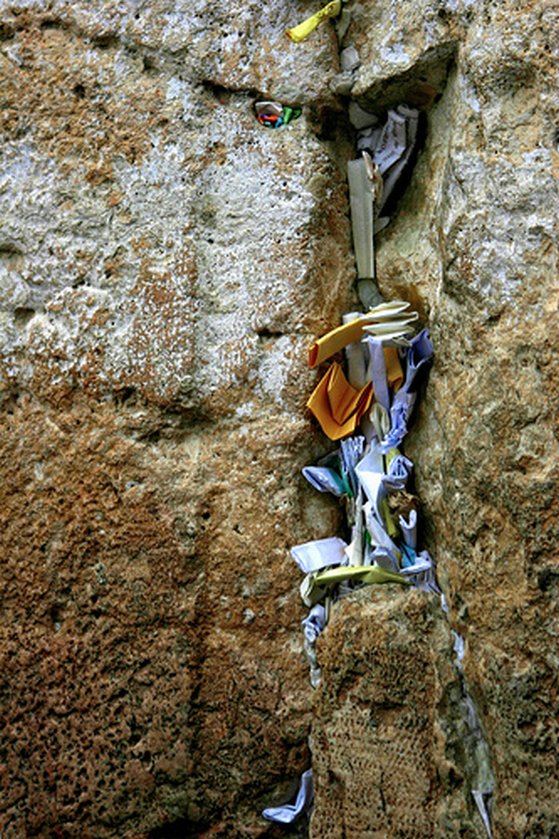 Prayer notes folded small to fit into the Western Walls’s crevices.