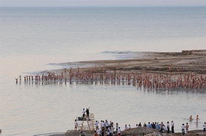 The nude models aged 18 to 77 met early Saturday morning, according to one participant, calling it both exhilarating and strangely natural to be part of one of the latest Tunick projects. Tunick who comes from a religious Jewish family in New York has done about 75 naked installations in cities around the world. This one was about environmental awareness and freedom in the Middle East. The Dead Sea is rapidly sinking due to water shortages from one end in the north as the Jordan River runs dry, and greedy chemical companies from Israel and Jordan on the south side.