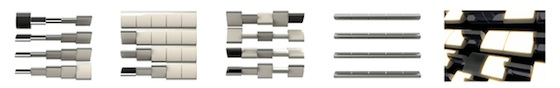Millions of tiny OLED tiles create changing images using light by flipping into an on or off position, as seen below. When the dark side faces out, it creates the dark area in an image, when the light emitting side faces out, it forms part of an pattern created in light.