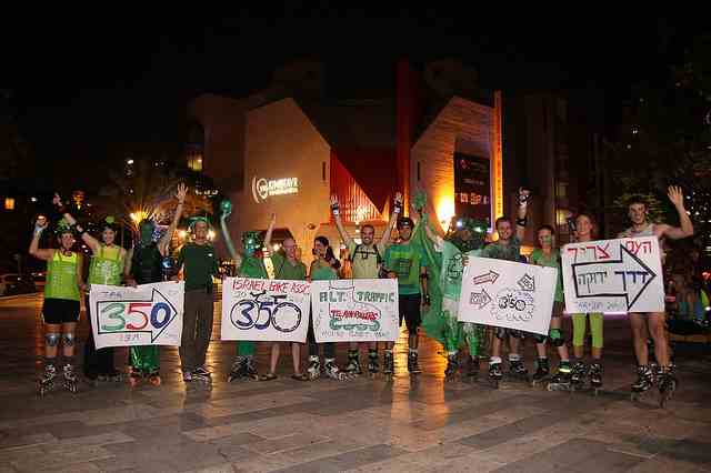 The Tel Aviv Rollers (above) also took to the streets on roller blades as part of the Moving Planet call to move beyond fossil fuels on September 24, 2011.