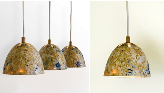 Made from sawdust and plastic bags alone, these adhesive-free lamps take leftover materials and make them shine again.