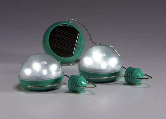 Nokero solar light bulbs charge by day and provide hours of light each night for about a year and a half before the battery must be replaced.