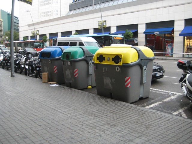 Recycling of numerous materials, including plastic material, glass, paper, and even organic waste is done by placing rows of large recycling bins on sidewalks, with instructions on which bins are to be used for various items. This could compare with efforts now being done in countries like Israel, where local Greenpeace branches have gotten into recycling campaigns.