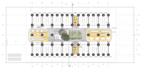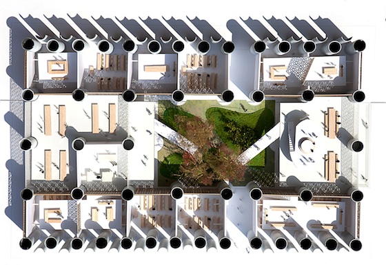 Construction is a key contributor to global emissions, so Mario Cucinella has proposed a design that uses locally-available materials with a much smaller carbon footprint. These materials also have excellent thermal massing that reduces the need for mechanical heating or cooling.