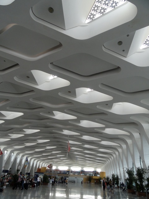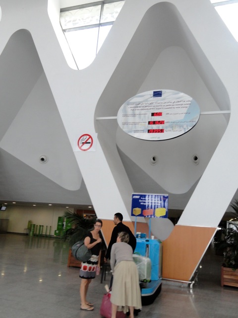 morocco solar energy airport power marrakesh, NAPS oyMarrakesh also known as the “Ochre City” is my favorite place in Morocco. Visiting there last summer, I got to see how the futuristic transport hub is creating solar power in action. Supplied by the Finnish company Naps Oy, who I met in Finland in 2010, I like the way the solar elements integrate with the design experience. I also love how the company has added a solar energy meter (see above), showing how much carbon dioxide has been spared from the atmosphere. Placed inappropriately below the meter is a large plastic wrap center where worried tourists slap reams of plastic onto their luggage to protect it. Well, the world can’t be made perfect all at once. See below for some remarkable photos of the beautiful Marrakesh airport.