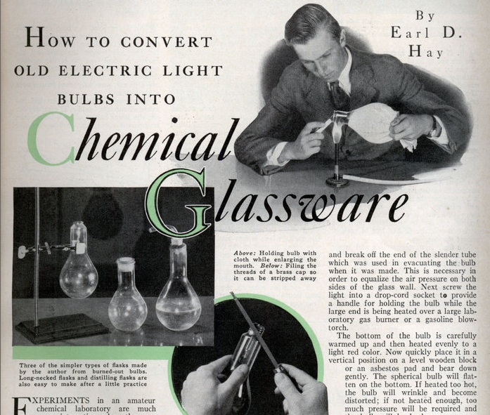 A more scientific project would be to convert your old light bulbs into chemical glassware. This idea is not new (it was published in Popular Science in 1933, as seen above), but it’s still relevant. Check out the full instructions at Modern Mechanix.
