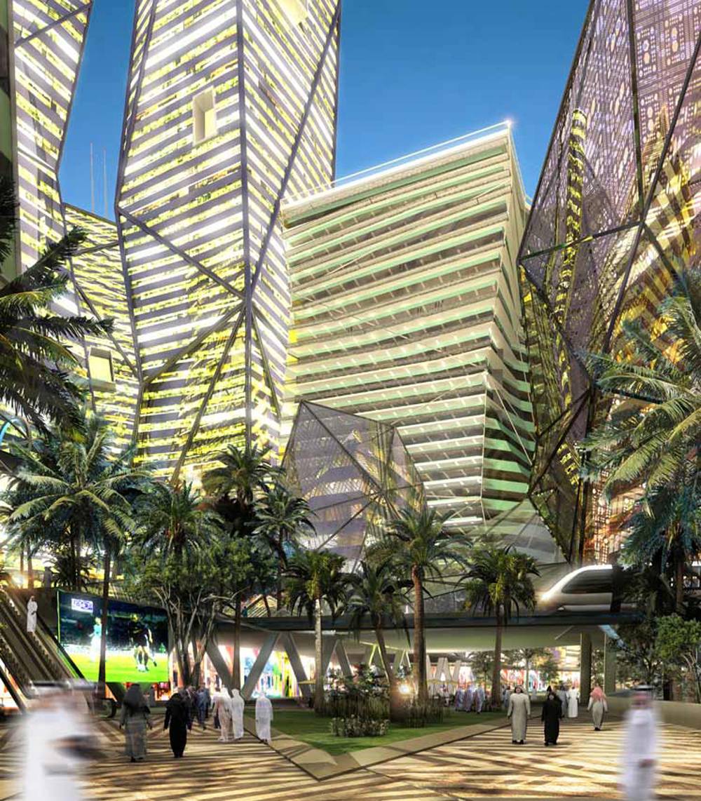 KAFD will be a pedestrian-friendly center in Riyadh with a monorail and solar-powered skywalk bridges. If the Saudis can be convinced to leave their cars at home, these will keep vehicular pollution down.